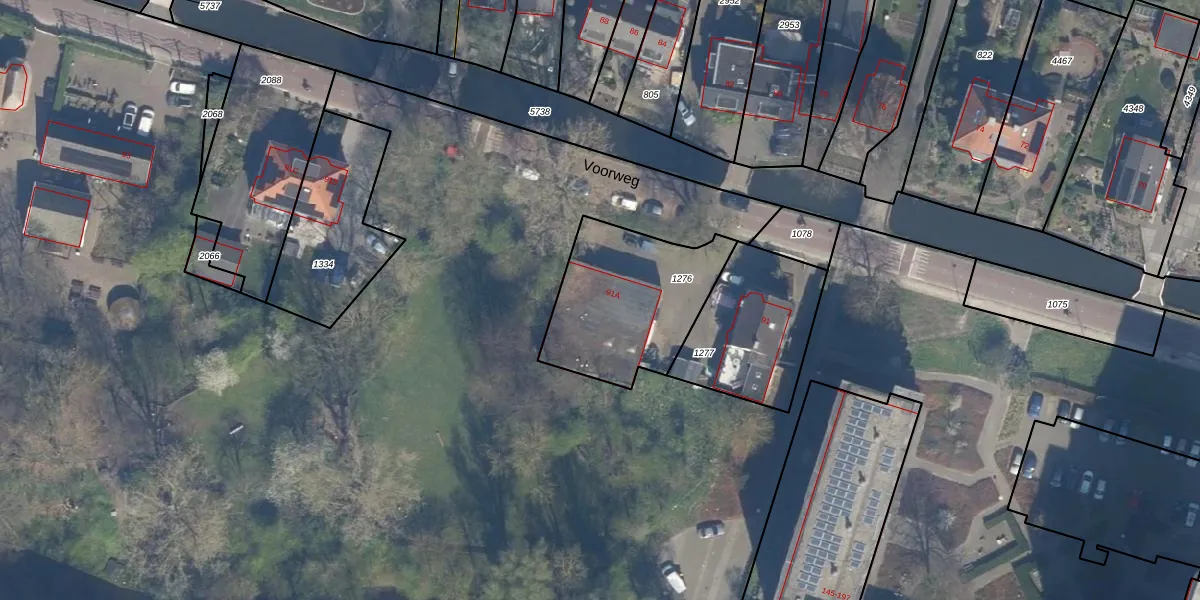Het perceel waarop Voorweg 91-A staat heeft een oppervlakte van 575 m². Dit is een groot perceel. De perceeloppervlakte wordt geregistreerd door het Kadaster. Gedetailleerde informatie over de maten van dit perceel kunt u vinden in het rapport Kadastrale kaart met maatvoering van Voorweg 91-A.
