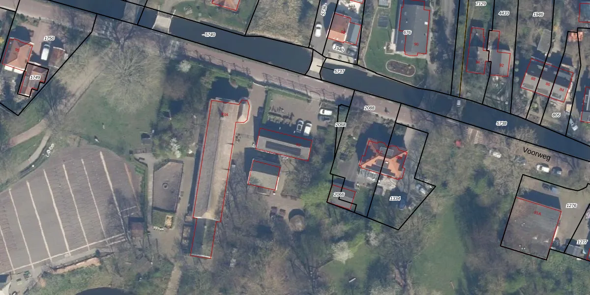 Het perceel waarop Voorweg 93 staat heeft een oppervlakte van 7,2 ha. Dit is een zeer groot perceel. De perceeloppervlakte wordt geregistreerd door het Kadaster. Gedetailleerde informatie over de maten van dit perceel kunt u vinden in het rapport Kadastrale kaart met maatvoering van Voorweg 93.