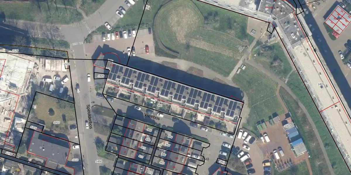 Het perceel waarop Vreebos 22 staat heeft een oppervlakte van 1523 m². Dit is een zeer groot perceel. De perceeloppervlakte wordt geregistreerd door het Kadaster. Gedetailleerde informatie over de maten van dit perceel kunt u vinden in het rapport Kadastrale kaart met maatvoering van Vreebos 22.