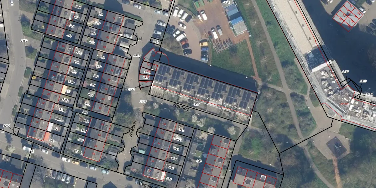Het perceel waarop Vreebos 33 staat heeft een oppervlakte van 1010 m². Dit is een zeer groot perceel. De perceeloppervlakte wordt geregistreerd door het Kadaster. Gedetailleerde informatie over de maten van dit perceel kunt u vinden in het rapport Kadastrale kaart met maatvoering van Vreebos 33.