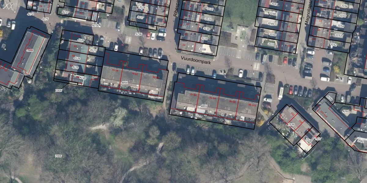 Het perceel waarop Vuurdoornpark 90 staat heeft een oppervlakte van 1094 m². Dit is een zeer groot perceel. De perceeloppervlakte wordt geregistreerd door het Kadaster. Gedetailleerde informatie over de maten van dit perceel kunt u vinden in het rapport Kadastrale kaart met maatvoering van Vuurdoornpark 90.