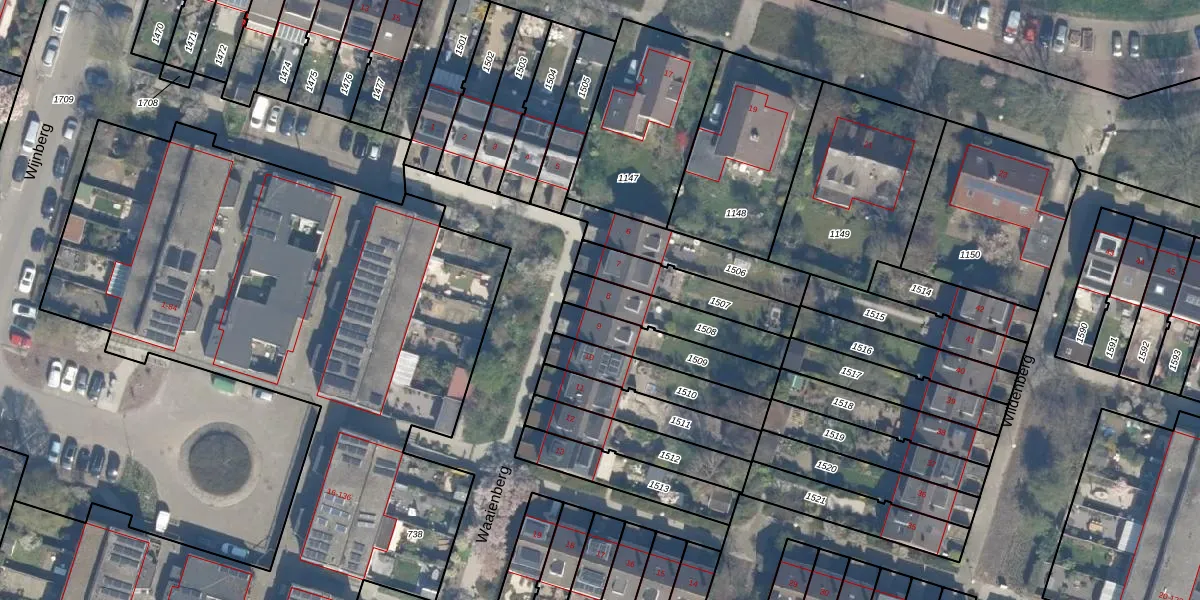 Gebruik de zoekbalk of klik op een perceel voor informatie over de adressen binnen dit perceel.