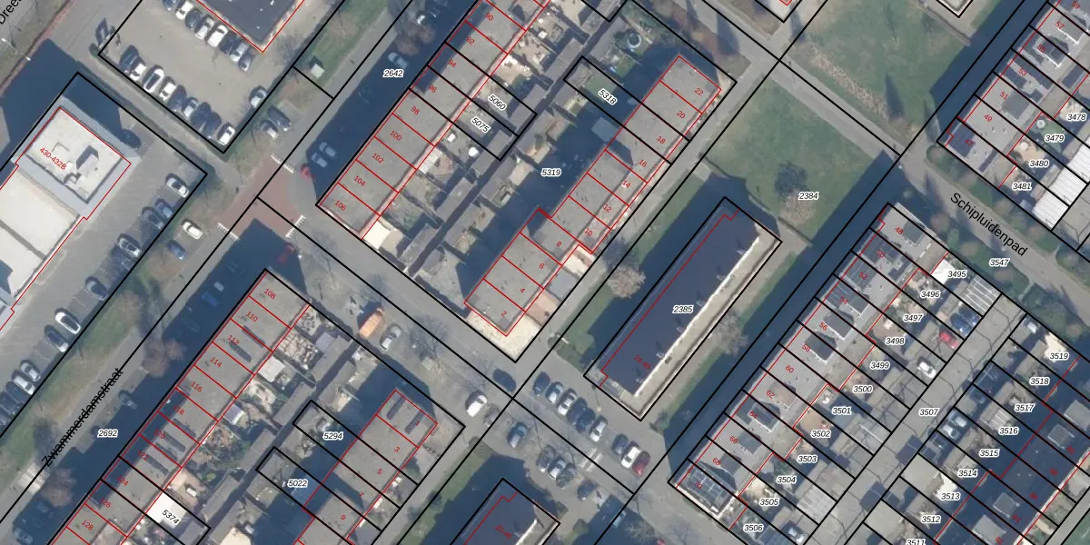 Het perceel waarop Waarderstraat 6 staat heeft een oppervlakte van 2565 m². Dit is een zeer groot perceel. De perceeloppervlakte wordt geregistreerd door het Kadaster. Gedetailleerde informatie over de maten van dit perceel kunt u vinden in het rapport Kadastrale kaart met maatvoering van Waarderstraat 6.