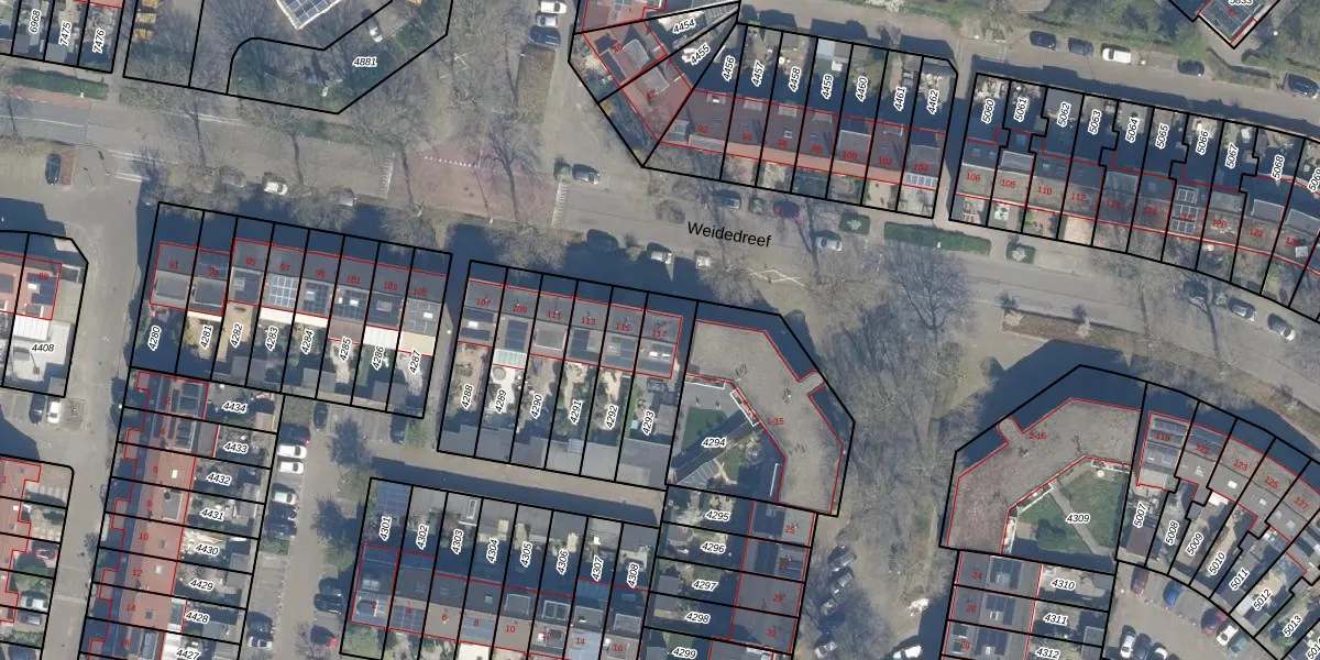Gebruik de zoekbalk of klik op een perceel voor informatie over de adressen binnen dit perceel.