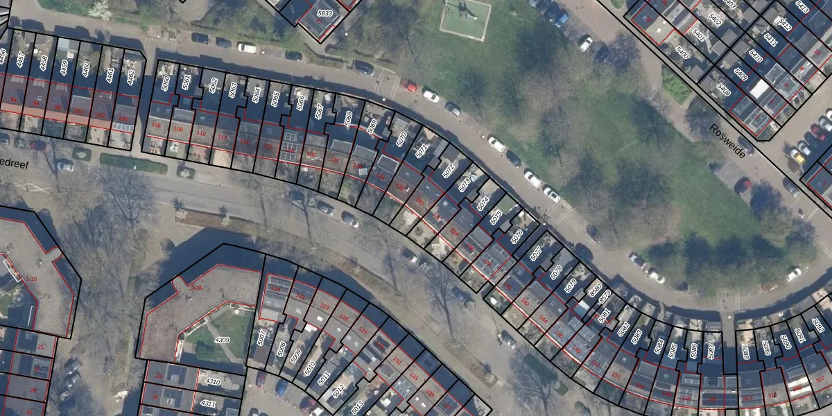 Gebruik de zoekbalk of klik op een perceel voor informatie over de adressen binnen dit perceel.