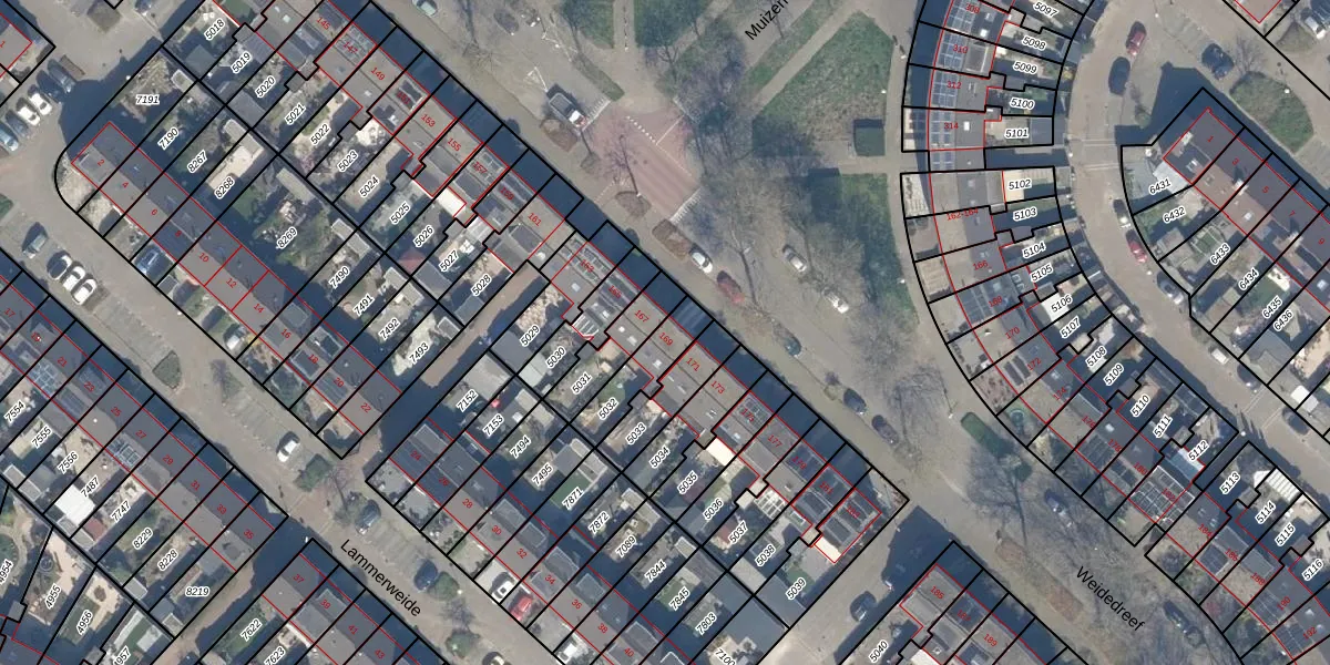 Gebruik de zoekbalk of klik op een perceel voor informatie over de adressen binnen dit perceel.