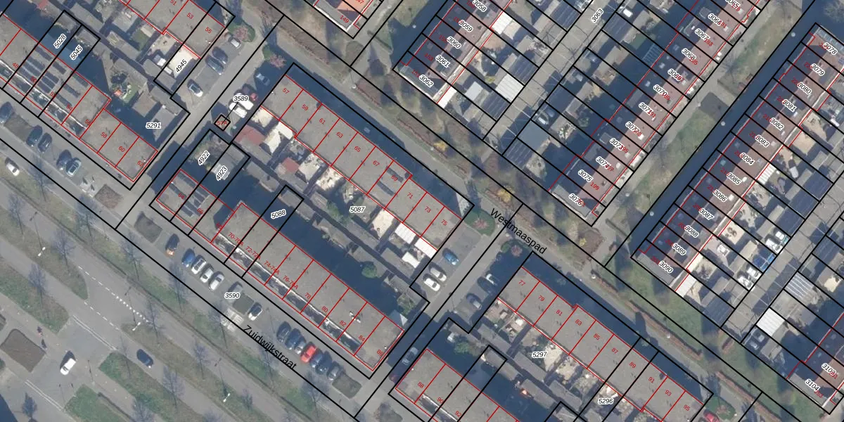 Westmaaspad 73 is gelegen op kadastraal perceel ZWD01F5087. Deze kadastrale aanduiding is uniek en wordt gebruikt door het Kadaster om eigendomsrechten en andere zakelijke rechten vast te leggen. Het perceel maakt onderdeel uit van de kadastrale gemeente Zegwaard.