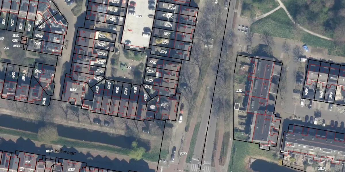 Gebruik de zoekbalk of klik op een perceel voor informatie over de adressen binnen dit perceel.