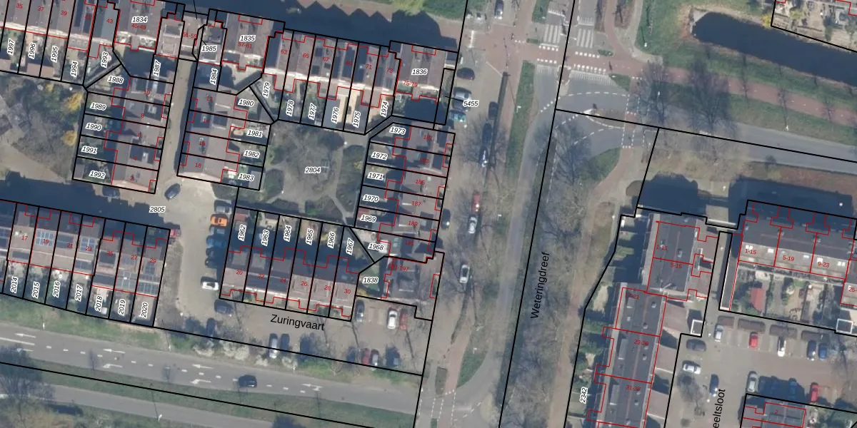 Gebruik de zoekbalk of klik op een perceel voor informatie over de adressen binnen dit perceel.