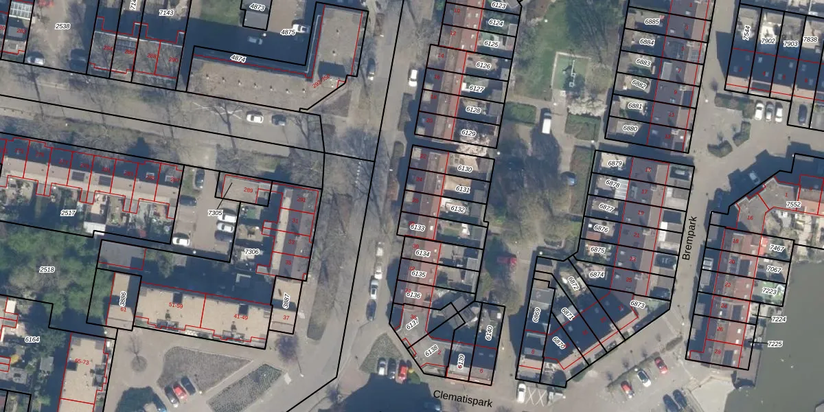 Gebruik de zoekbalk of klik op een perceel voor informatie over de adressen binnen dit perceel.
