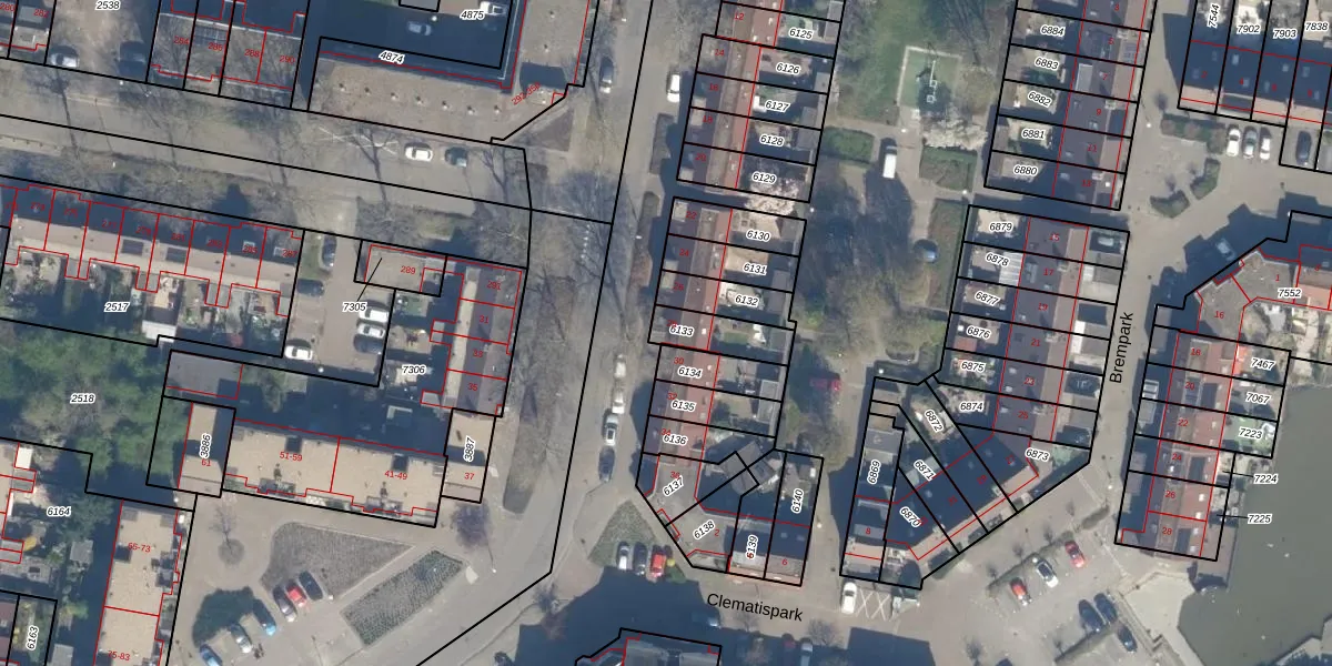 Gebruik de zoekbalk of klik op een perceel voor informatie over de adressen binnen dit perceel.