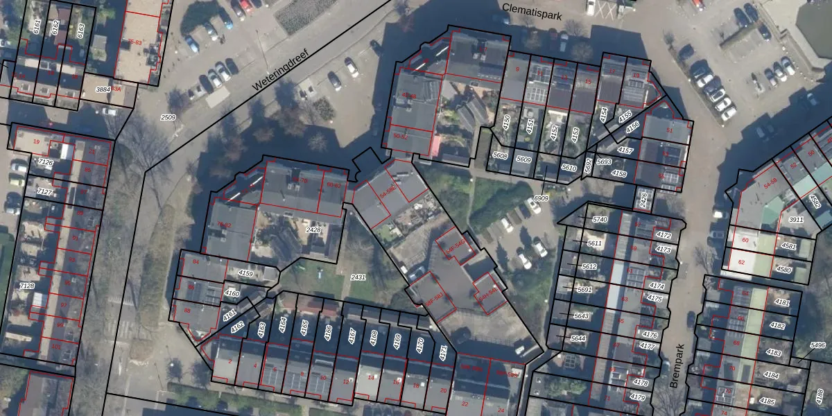 Weteringdreef 54-D is gelegen op kadastraal perceel ZWD01B2428. Deze kadastrale aanduiding is uniek en wordt gebruikt door het Kadaster om eigendomsrechten en andere zakelijke rechten vast te leggen. Het perceel maakt onderdeel uit van de kadastrale gemeente Zegwaard.