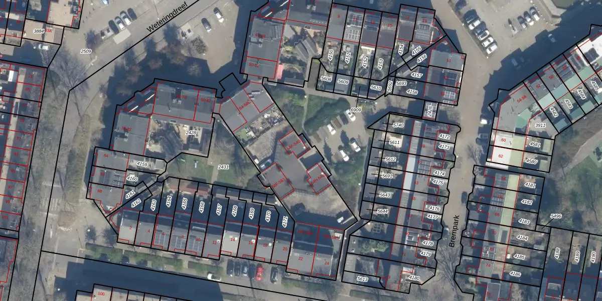 Weteringdreef 54-H is gelegen op kadastraal perceel ZWD01B2428. Deze kadastrale aanduiding is uniek en wordt gebruikt door het Kadaster om eigendomsrechten en andere zakelijke rechten vast te leggen. Het perceel maakt onderdeel uit van de kadastrale gemeente Zegwaard.