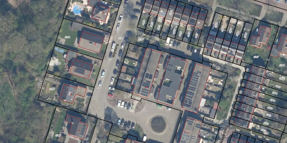 Het perceel waarop Wijnberg 54 staat heeft een oppervlakte van 5853 m². Dit is een zeer groot perceel. De perceeloppervlakte wordt geregistreerd door het Kadaster. Gedetailleerde informatie over de maten van dit perceel kunt u vinden in het rapport Kadastrale kaart met maatvoering van Wijnberg 54.