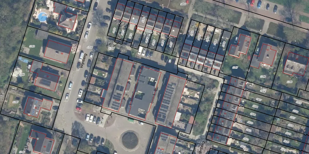 Het perceel waarop Wijnberg 59 staat heeft een oppervlakte van 5853 m². Dit is een zeer groot perceel. De perceeloppervlakte wordt geregistreerd door het Kadaster. Gedetailleerde informatie over de maten van dit perceel kunt u vinden in het rapport Kadastrale kaart met maatvoering van Wijnberg 59.