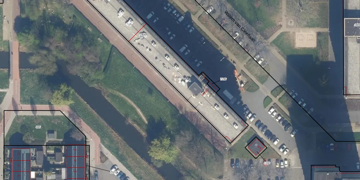 Het perceel waarop Willem van Cleeflaan 613 staat heeft een oppervlakte van 2247 m². Dit is een zeer groot perceel. De perceeloppervlakte wordt geregistreerd door het Kadaster. Gedetailleerde informatie over de maten van dit perceel kunt u vinden in het rapport Kadastrale kaart met maatvoering van Willem van Cleeflaan 613.