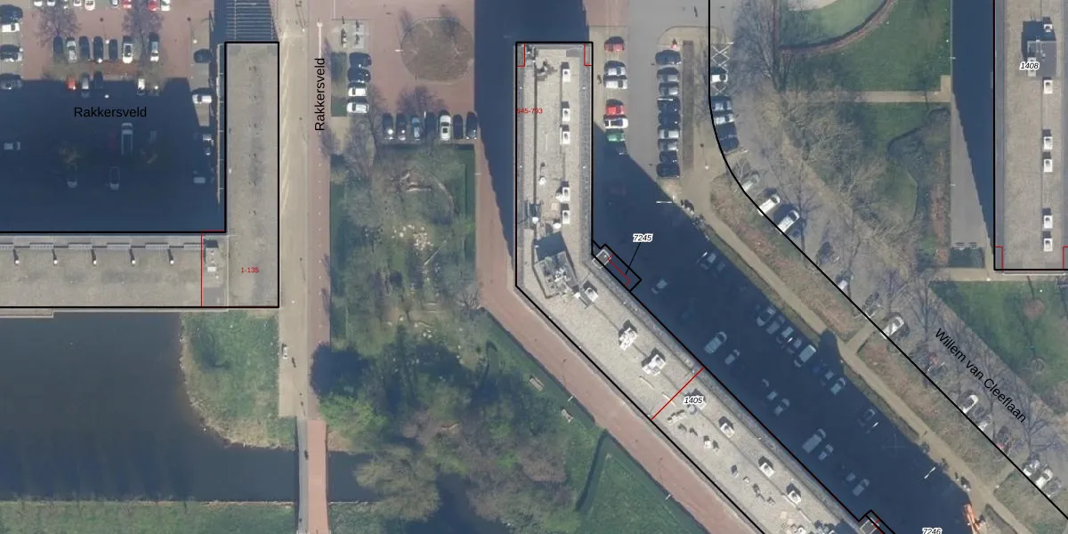Het perceel waarop Willem van Cleeflaan 693 staat heeft een oppervlakte van 2247 m². Dit is een zeer groot perceel. De perceeloppervlakte wordt geregistreerd door het Kadaster. Gedetailleerde informatie over de maten van dit perceel kunt u vinden in het rapport Kadastrale kaart met maatvoering van Willem van Cleeflaan 693.