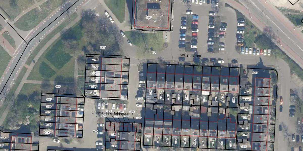 Het perceel waarop Willemstraat 1 staat heeft een oppervlakte van 164 m². Dit is een middelgroot perceel. De perceeloppervlakte wordt geregistreerd door het Kadaster. Gedetailleerde informatie over de maten van dit perceel kunt u vinden in het rapport Kadastrale kaart met maatvoering van Willemstraat 1.