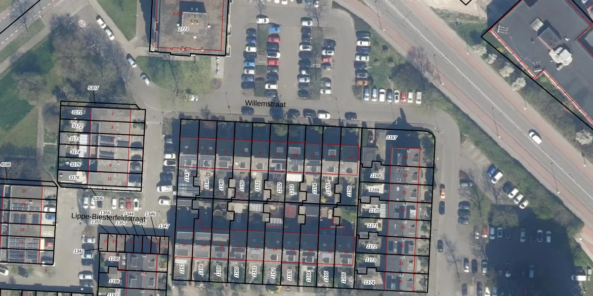 Het perceel waarop Willemstraat 13 staat heeft een oppervlakte van 158 m². Dit is een middelgroot perceel. De perceeloppervlakte wordt geregistreerd door het Kadaster. Gedetailleerde informatie over de maten van dit perceel kunt u vinden in het rapport Kadastrale kaart met maatvoering van Willemstraat 13.