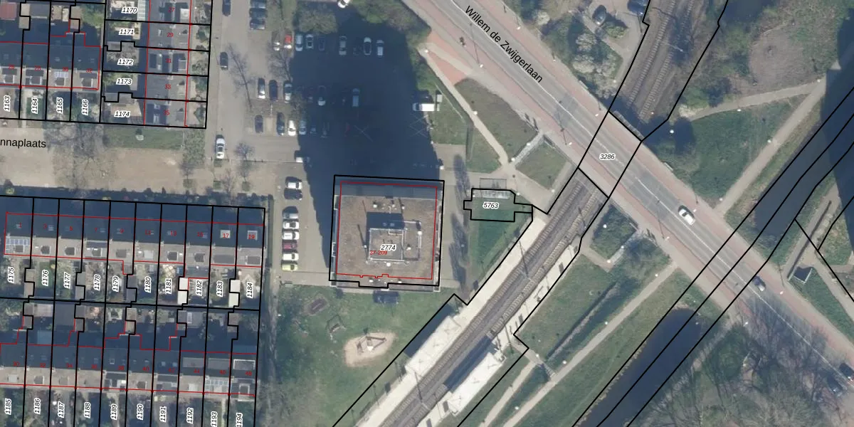 Het perceel waarop Willemstraat 55 staat heeft een oppervlakte van 636 m². Dit is een groot perceel. De perceeloppervlakte wordt geregistreerd door het Kadaster. Gedetailleerde informatie over de maten van dit perceel kunt u vinden in het rapport Kadastrale kaart met maatvoering van Willemstraat 55.