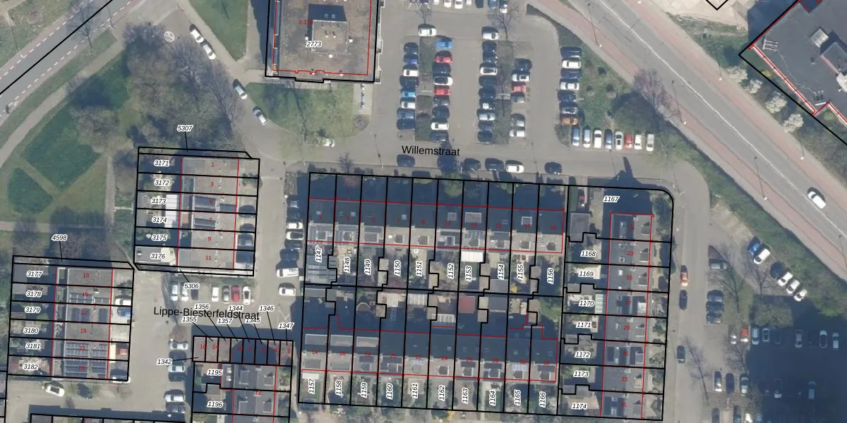 Gebruik de zoekbalk of klik op een perceel voor informatie over de adressen binnen dit perceel.
