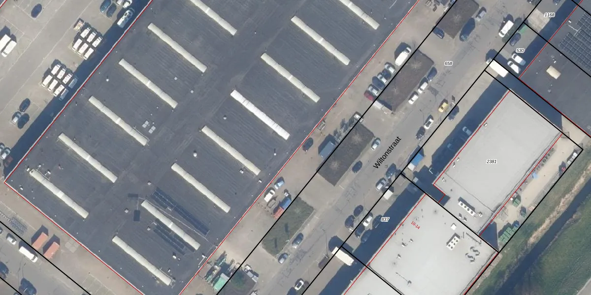 Het perceel waarop Wiltonstraat 23 staat heeft een oppervlakte van 2,7 ha. Dit is een zeer groot perceel. De perceeloppervlakte wordt geregistreerd door het Kadaster. Gedetailleerde informatie over de maten van dit perceel kunt u vinden in het rapport Kadastrale kaart met maatvoering van Wiltonstraat 23.