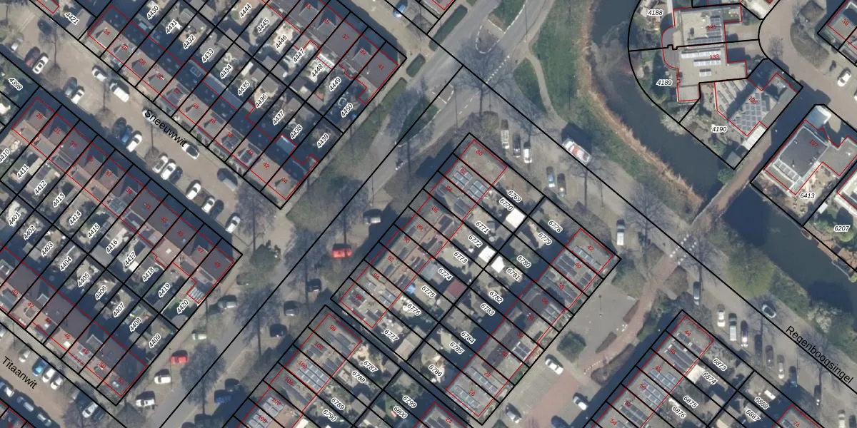 Gebruik de zoekbalk of klik op een perceel voor informatie over de adressen binnen dit perceel.