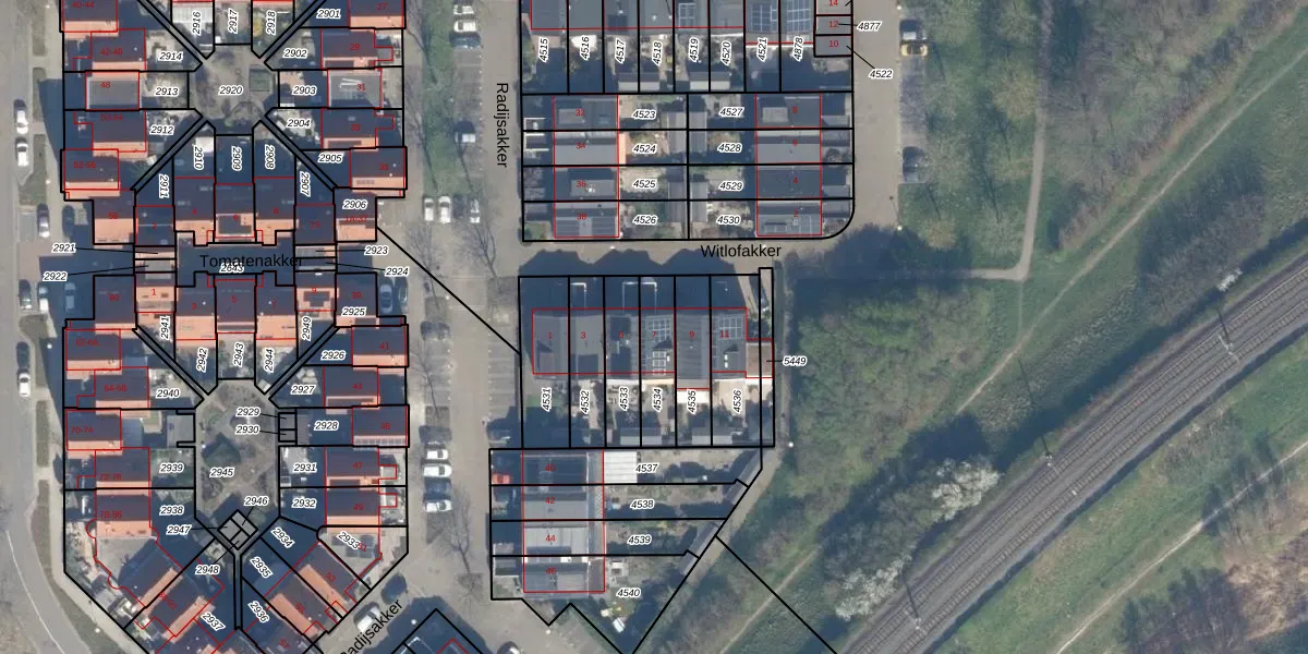 Gebruik de zoekbalk of klik op een perceel voor informatie over de adressen binnen dit perceel.