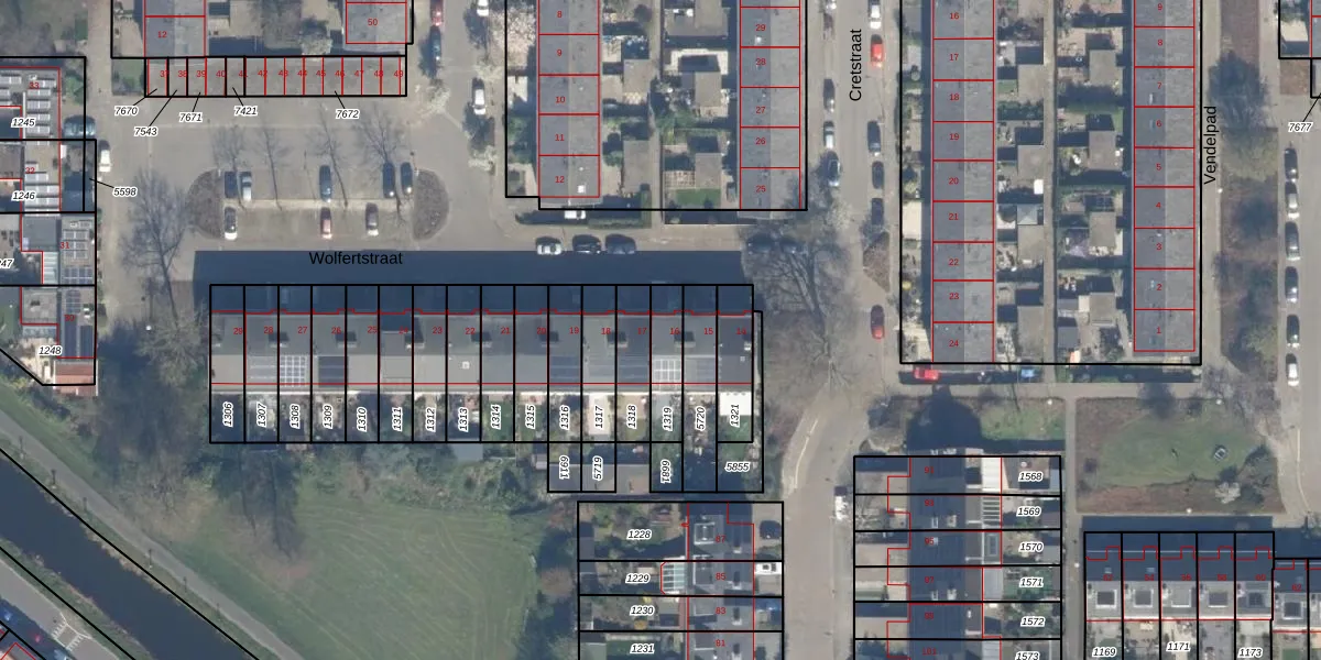 Het perceel waarop Wolfertstraat 16 staat heeft een oppervlakte van 123 m². Dit is een middelgroot perceel. De perceeloppervlakte wordt geregistreerd door het Kadaster. Gedetailleerde informatie over de maten van dit perceel kunt u vinden in het rapport Kadastrale kaart met maatvoering van Wolfertstraat 16.