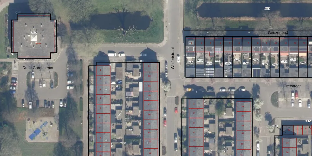 Het perceel waarop Wolfertstraat 60 staat heeft een oppervlakte van 3428 m². Dit is een zeer groot perceel. De perceeloppervlakte wordt geregistreerd door het Kadaster. Gedetailleerde informatie over de maten van dit perceel kunt u vinden in het rapport Kadastrale kaart met maatvoering van Wolfertstraat 60.
