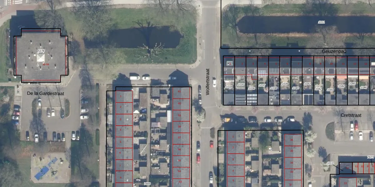 Het perceel waarop Wolfertstraat 61 staat heeft een oppervlakte van 3428 m². Dit is een zeer groot perceel. De perceeloppervlakte wordt geregistreerd door het Kadaster. Gedetailleerde informatie over de maten van dit perceel kunt u vinden in het rapport Kadastrale kaart met maatvoering van Wolfertstraat 61.