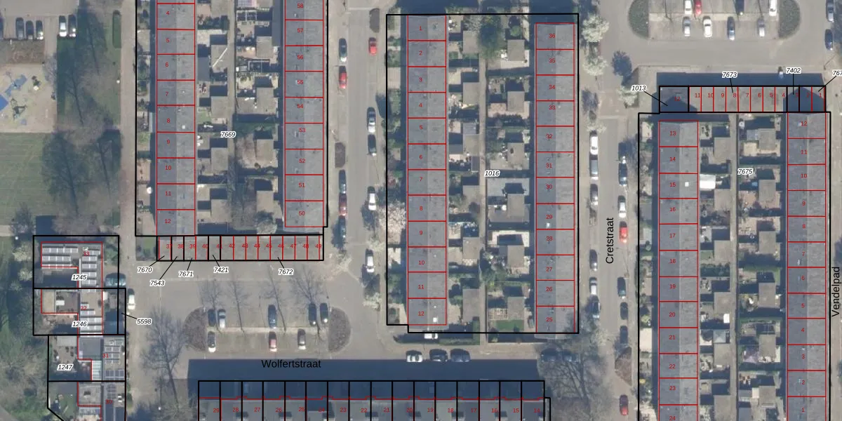 Het perceel waarop Wolfertstraat 8 staat heeft een oppervlakte van 3428 m². Dit is een zeer groot perceel. De perceeloppervlakte wordt geregistreerd door het Kadaster. Gedetailleerde informatie over de maten van dit perceel kunt u vinden in het rapport Kadastrale kaart met maatvoering van Wolfertstraat 8.