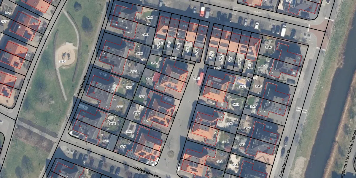 Gebruik de zoekbalk of klik op een perceel voor informatie over de adressen binnen dit perceel.