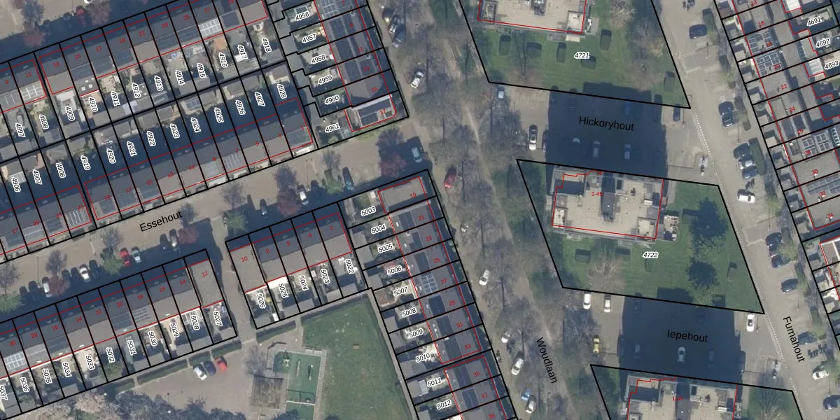 Gebruik de zoekbalk of klik op een perceel voor informatie over de adressen binnen dit perceel.