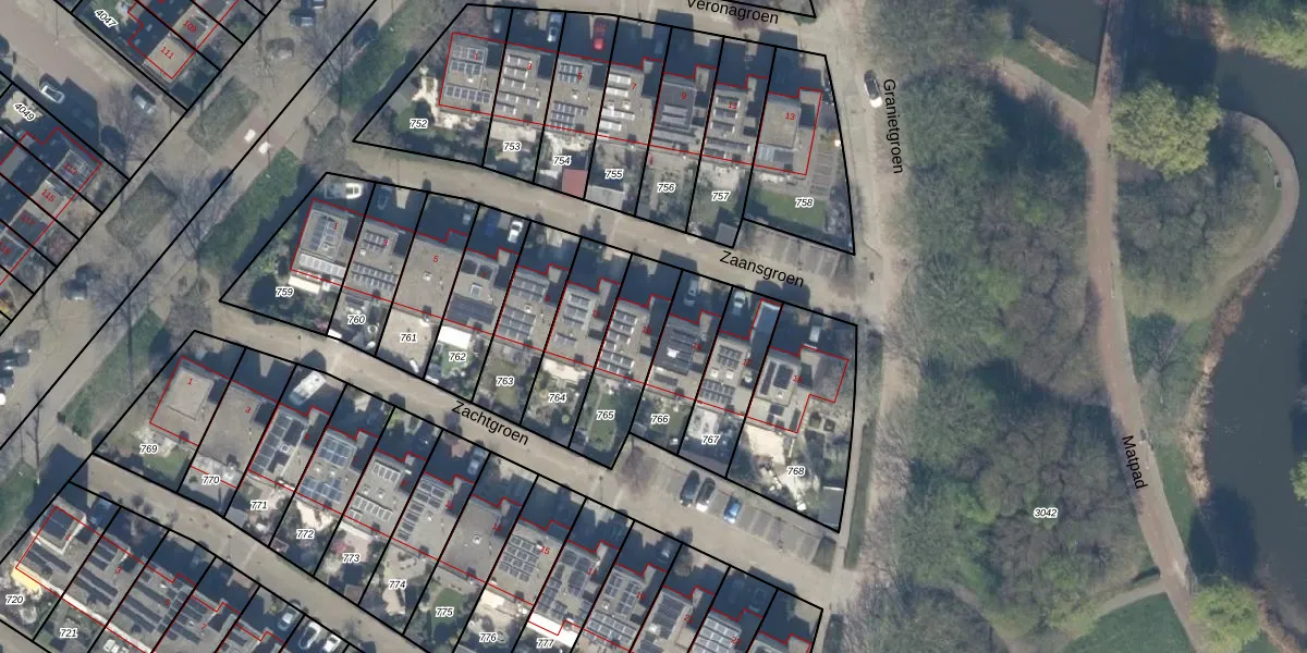 Gebruik de zoekbalk of klik op een perceel voor informatie over de adressen binnen dit perceel.