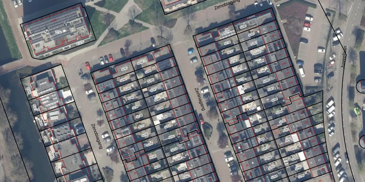 Gebruik de zoekbalk of klik op een perceel voor informatie over de adressen binnen dit perceel.