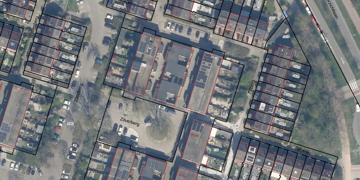 Het perceel waarop Zilverberg 62 staat heeft een oppervlakte van 5853 m². Dit is een zeer groot perceel. De perceeloppervlakte wordt geregistreerd door het Kadaster. Gedetailleerde informatie over de maten van dit perceel kunt u vinden in het rapport Kadastrale kaart met maatvoering van Zilverberg 62.