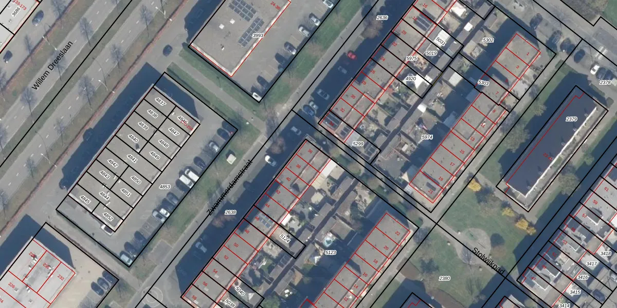 Het perceel waarop Zwammerdamstraat 36 staat heeft een oppervlakte van 2240 m². Dit is een zeer groot perceel. De perceeloppervlakte wordt geregistreerd door het Kadaster. Gedetailleerde informatie over de maten van dit perceel kunt u vinden in het rapport Kadastrale kaart met maatvoering van Zwammerdamstraat 36.