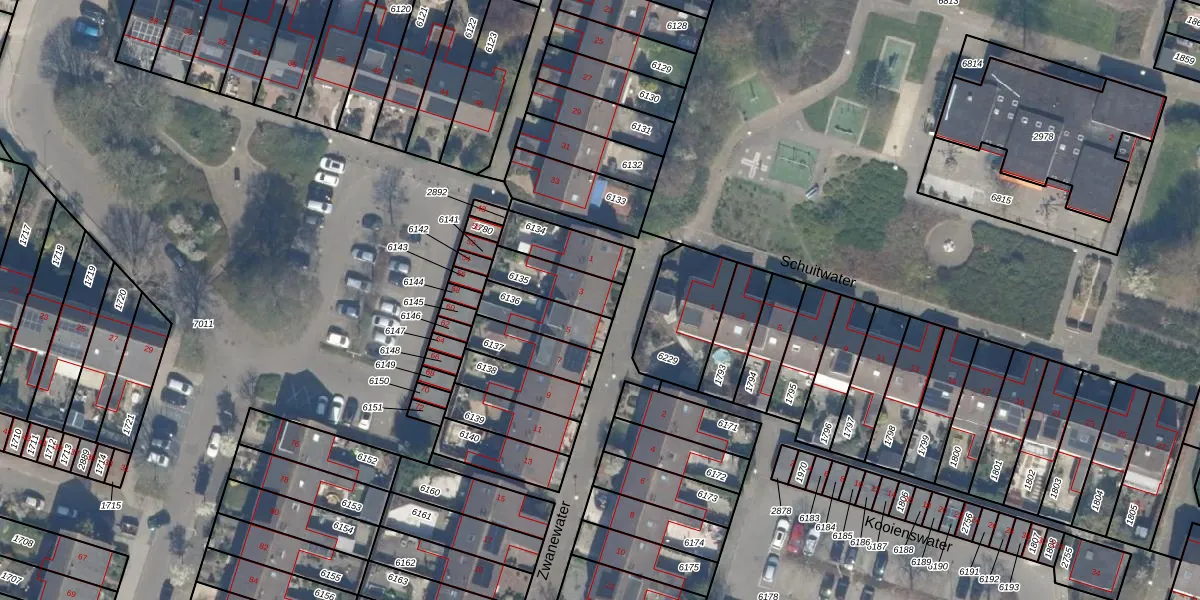 Gebruik de zoekbalk of klik op een perceel voor informatie over de adressen binnen dit perceel.
