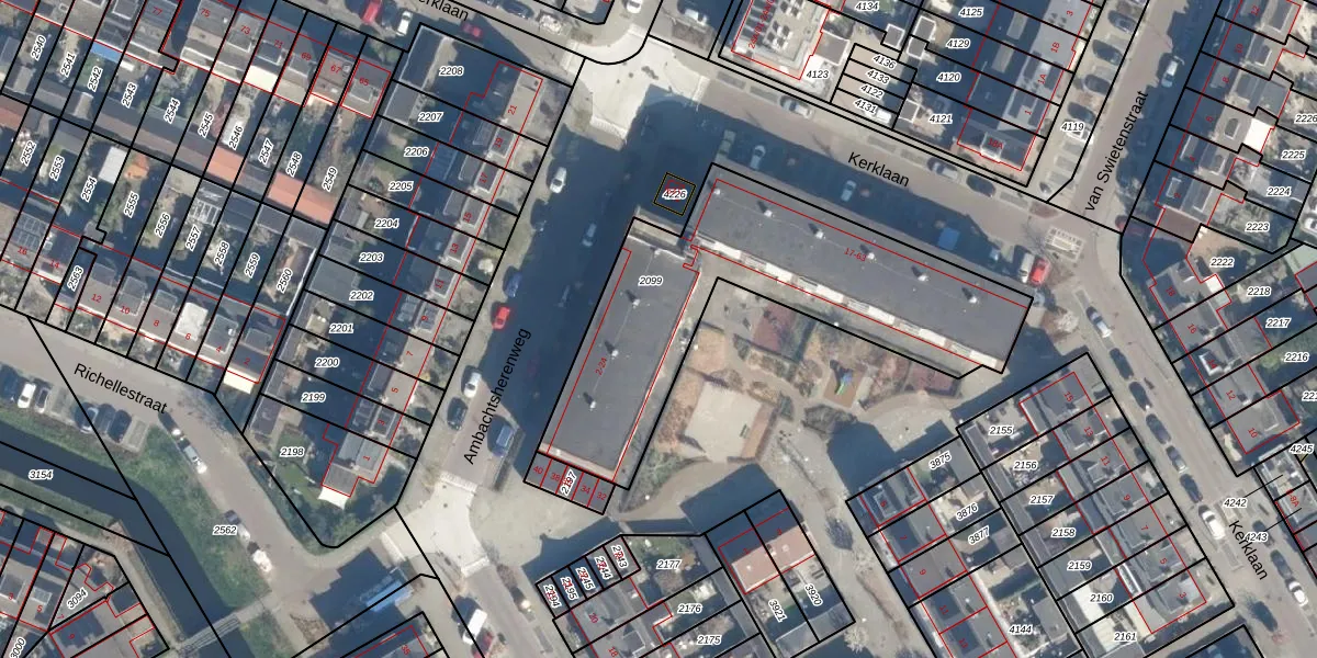 Ambachtsherenweg 24 is gelegen op kadastraal perceel ZTW01E2099. Deze kadastrale aanduiding is uniek en wordt gebruikt door het Kadaster om eigendomsrechten en andere zakelijke rechten vast te leggen. Het perceel maakt onderdeel uit van de kadastrale gemeente Zoeterwoude.