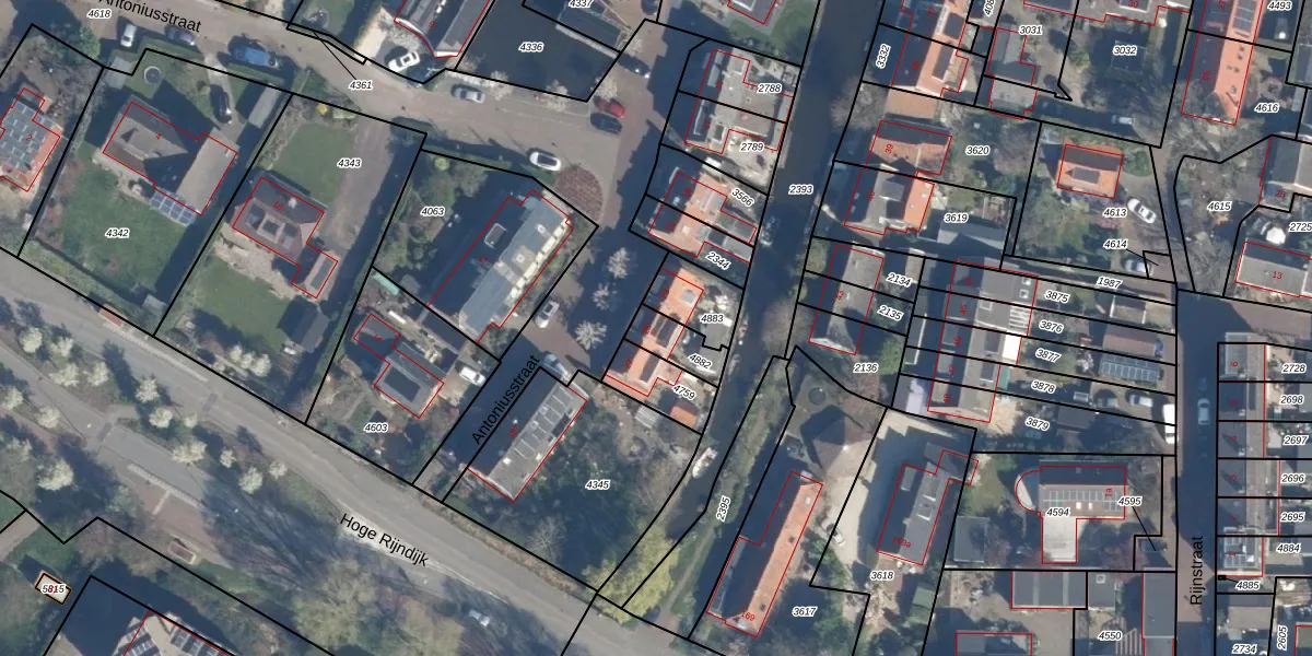 Antoniusstraat 25 is gelegen op kadastraal perceel ZTW01B4882. Deze kadastrale aanduiding is uniek en wordt gebruikt door het Kadaster om eigendomsrechten en andere zakelijke rechten vast te leggen. Het perceel maakt onderdeel uit van de kadastrale gemeente Zoeterwoude.