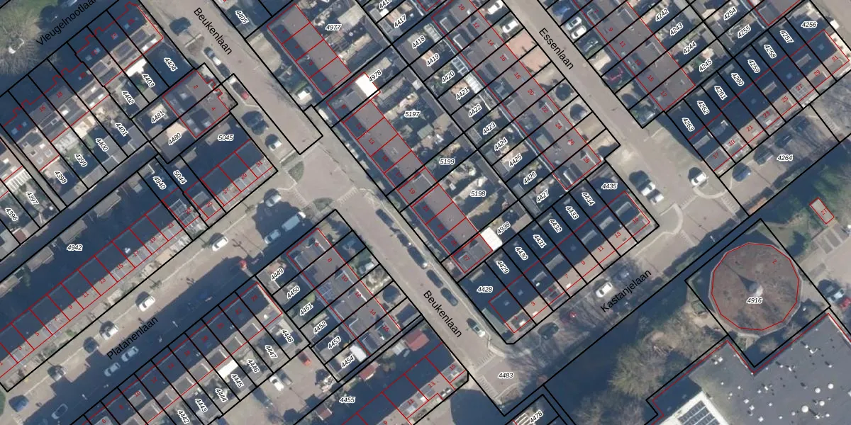 Het perceel waarop Beukenlaan 21 staat heeft een oppervlakte van 360 m². Dit is een groot perceel. De perceeloppervlakte wordt geregistreerd door het Kadaster. Gedetailleerde informatie over de maten van dit perceel kunt u vinden in het rapport Kadastrale kaart met maatvoering van Beukenlaan 21.