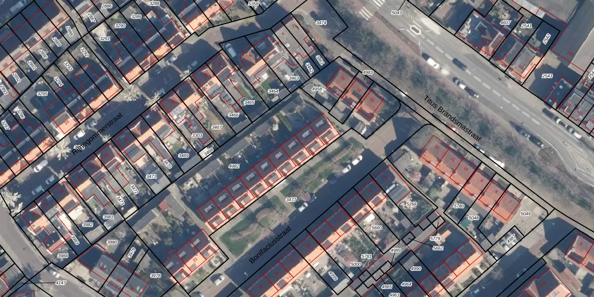 Bonifaciusstraat 5 is gelegen op kadastraal perceel ZTW01B4982. Deze kadastrale aanduiding is uniek en wordt gebruikt door het Kadaster om eigendomsrechten en andere zakelijke rechten vast te leggen. Het perceel maakt onderdeel uit van de kadastrale gemeente Zoeterwoude.