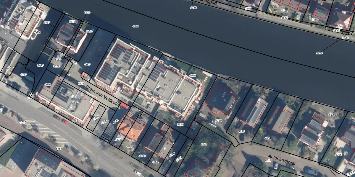 Bram van Veldestraat 36 is gelegen op kadastraal perceel ZTW01B5518. Deze kadastrale aanduiding is uniek en wordt gebruikt door het Kadaster om eigendomsrechten en andere zakelijke rechten vast te leggen. Het perceel maakt onderdeel uit van de kadastrale gemeente Zoeterwoude.