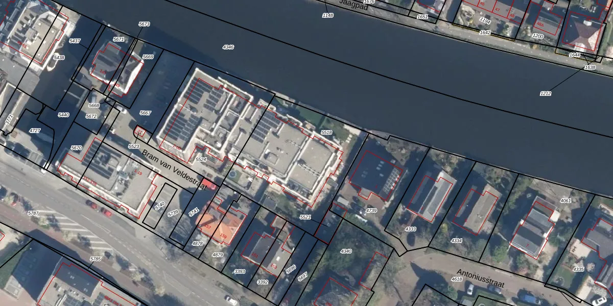 Bram van Veldestraat 46 is gelegen op kadastraal perceel ZTW01B5518. Deze kadastrale aanduiding is uniek en wordt gebruikt door het Kadaster om eigendomsrechten en andere zakelijke rechten vast te leggen. Het perceel maakt onderdeel uit van de kadastrale gemeente Zoeterwoude.