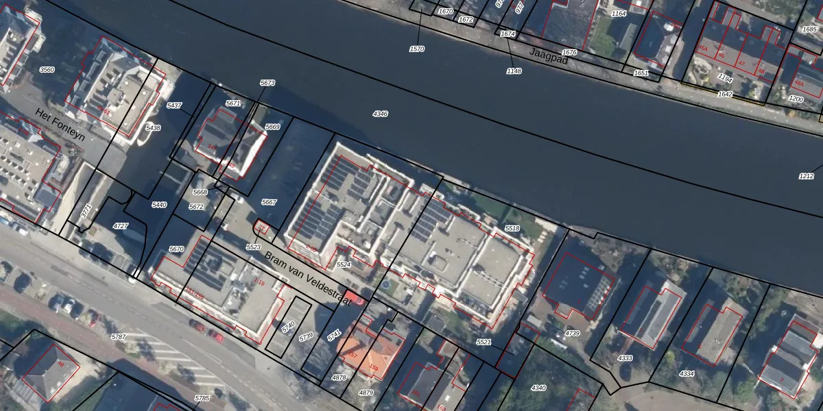 Het perceel waarop Bram van Veldestraat 52 staat heeft een oppervlakte van 927 m². Dit is een groot perceel. De perceeloppervlakte wordt geregistreerd door het Kadaster. Gedetailleerde informatie over de maten van dit perceel kunt u vinden in het rapport Kadastrale kaart met maatvoering van Bram van Veldestraat 52.