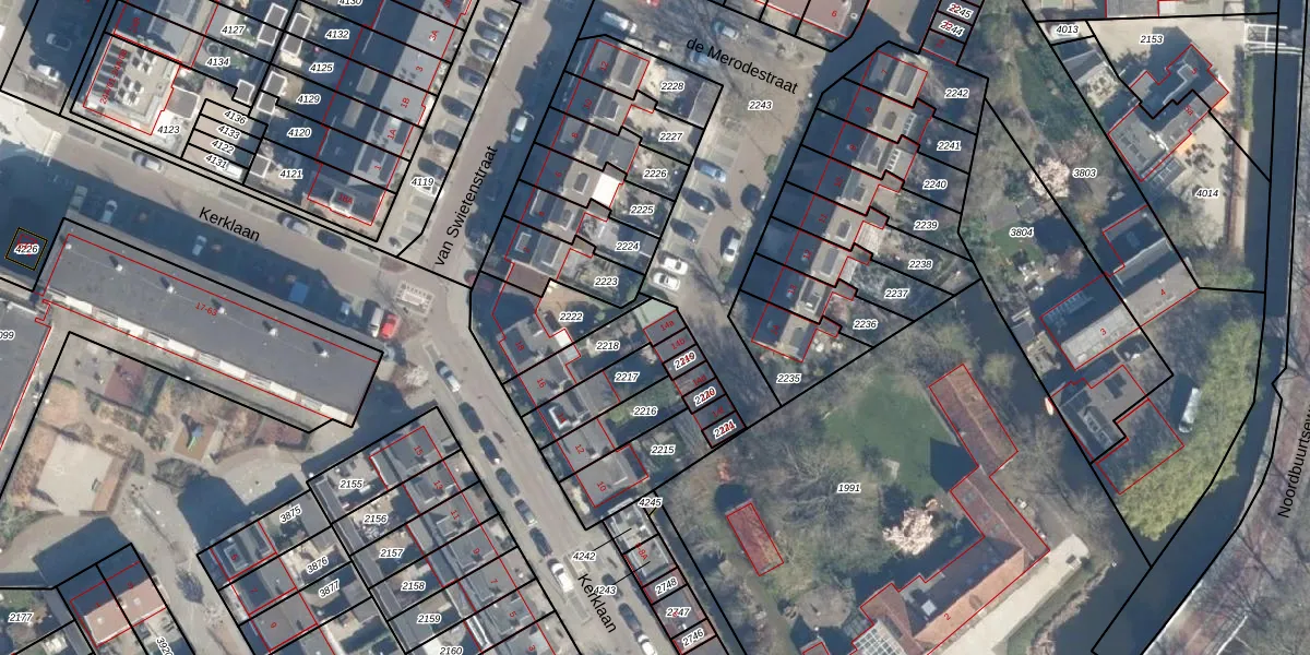 de Merodestraat 14-A is gelegen op kadastraal perceel ZTW01E2218. Deze kadastrale aanduiding is uniek en wordt gebruikt door het Kadaster om eigendomsrechten en andere zakelijke rechten vast te leggen. Het perceel maakt onderdeel uit van de kadastrale gemeente Zoeterwoude.
