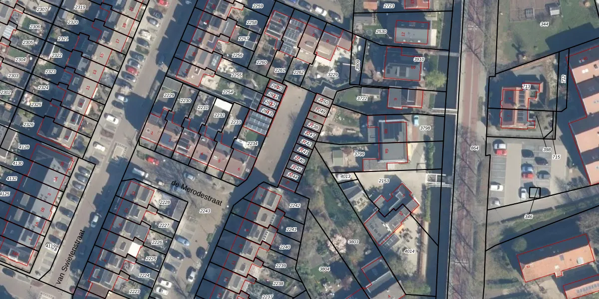 de Merodestraat 7-E is gelegen op kadastraal perceel ZTW01E2741. Deze kadastrale aanduiding is uniek en wordt gebruikt door het Kadaster om eigendomsrechten en andere zakelijke rechten vast te leggen. Het perceel maakt onderdeel uit van de kadastrale gemeente Zoeterwoude.