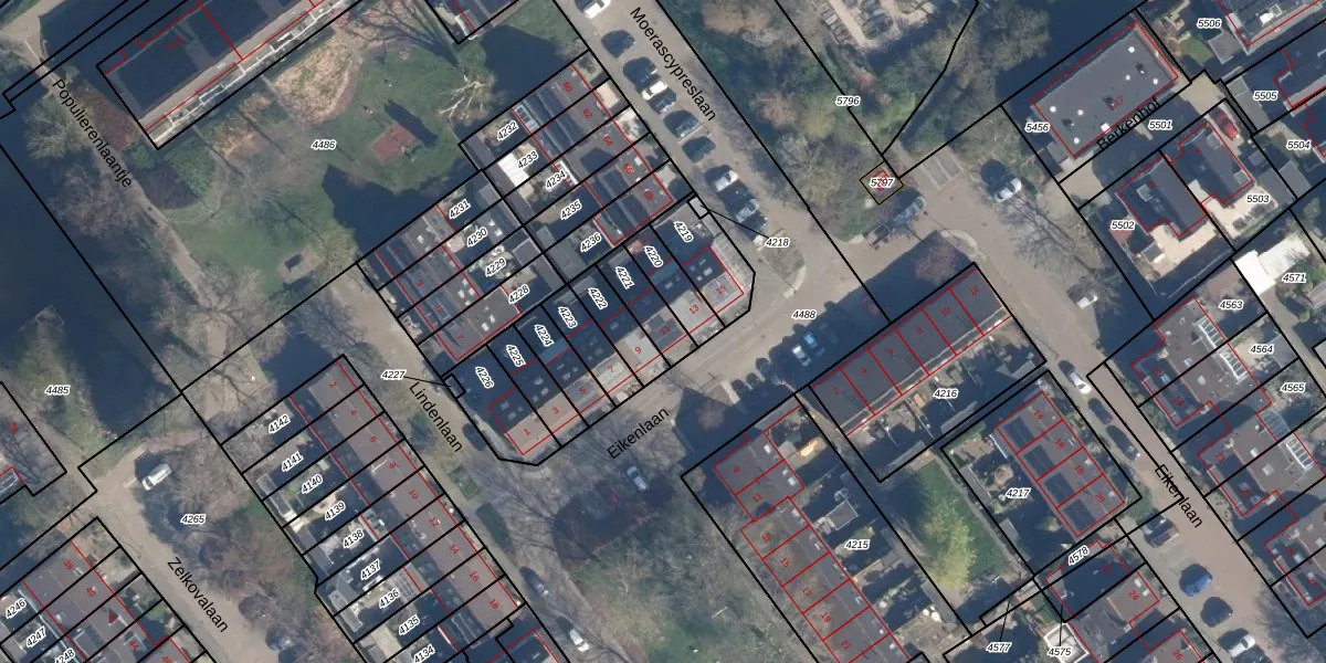 Eikenlaan 11 is gelegen op kadastraal perceel ZTW01B4221. Deze kadastrale aanduiding is uniek en wordt gebruikt door het Kadaster om eigendomsrechten en andere zakelijke rechten vast te leggen. Het perceel maakt onderdeel uit van de kadastrale gemeente Zoeterwoude.