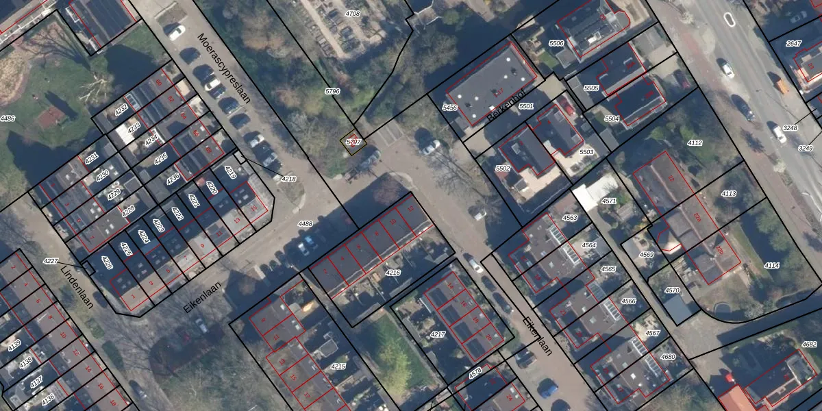 Eikenlaan 12 is gelegen op kadastraal perceel ZTW01B4216. Deze kadastrale aanduiding is uniek en wordt gebruikt door het Kadaster om eigendomsrechten en andere zakelijke rechten vast te leggen. Het perceel maakt onderdeel uit van de kadastrale gemeente Zoeterwoude.